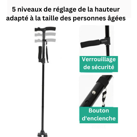La canne pliante est facile à transporter et peut être utilisée en la dépliant simplement. La canne peut être facilement ajustée à votre taille et sa poignée spécialement conçue offre une prise confortable et ferme.