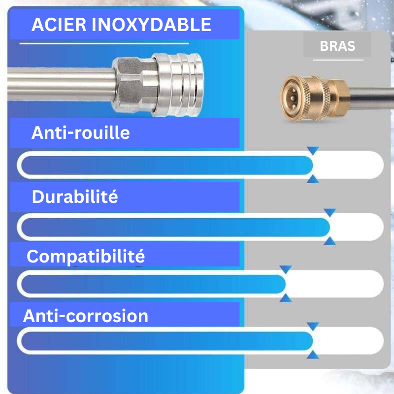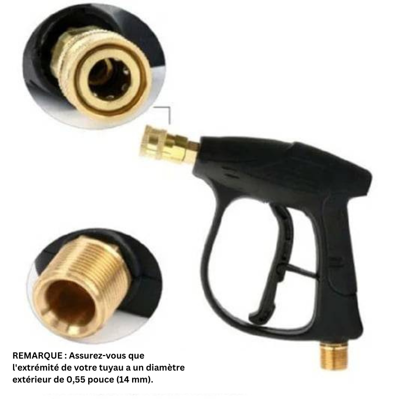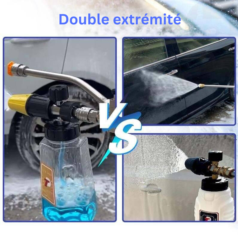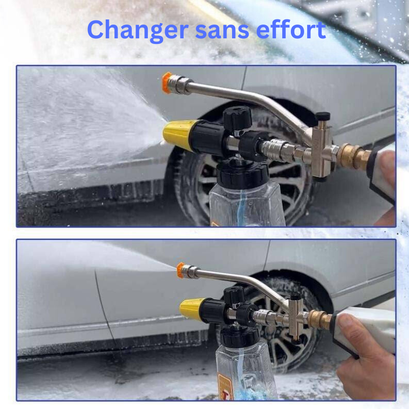 UNE APPROCHE INNOVANTE DU LAVAGE SOUS PRESSION : Transformez votre routine de nettoyage avec notre accessoire innovant de projection de mousse à double connecteur, conçu pour connecter simultanément une buse de nettoyeur haute pression et un canon à mousse de neige.