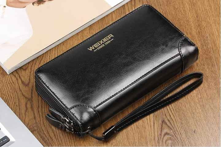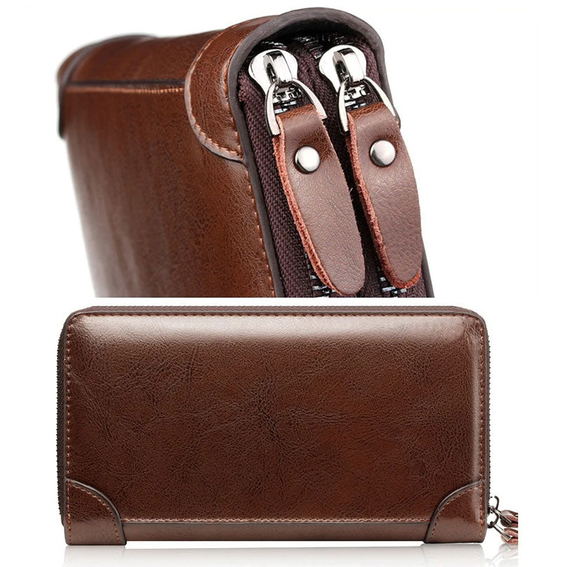 Pochette en Cuir pour Homme avec Double Fermeture